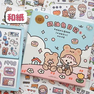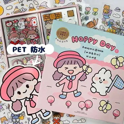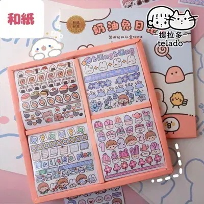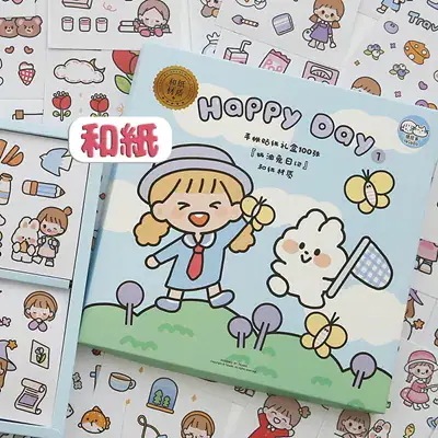 韓国の学習用品文房具 ラベル スマホ 飾り貼紙 かわいい 素材 風 シール 100枚 韓国 ステッカー