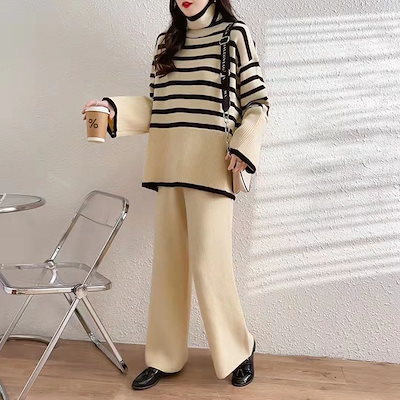 セットアップ気質ニットツーピースタートルネック厚手セーターゆったりカジュアルスーツ長袖婦人服