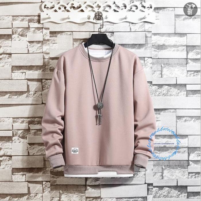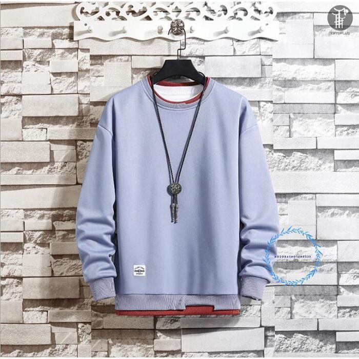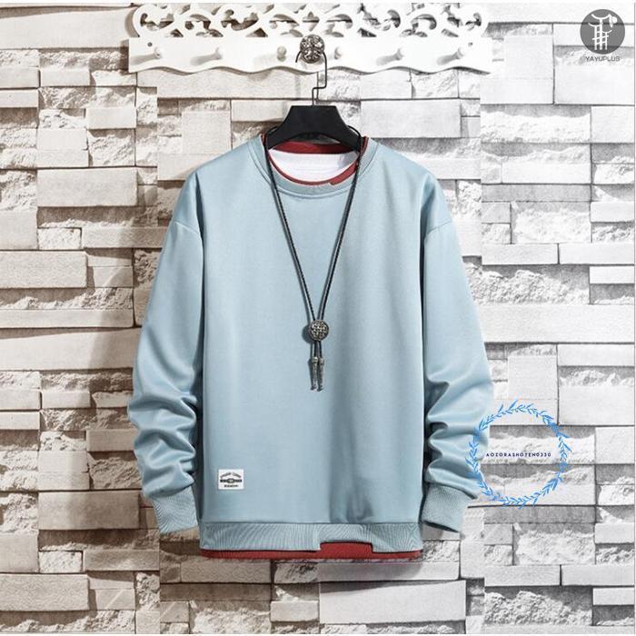 トレーナー レイヤード風Tシャツ 重ね着風 メンズ トップス 切り替え スウェット オシャレ プルオーバー 長袖 クルーネック 春服 秋服 新作 代引不可