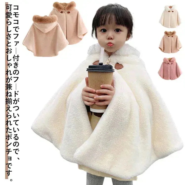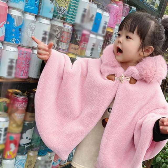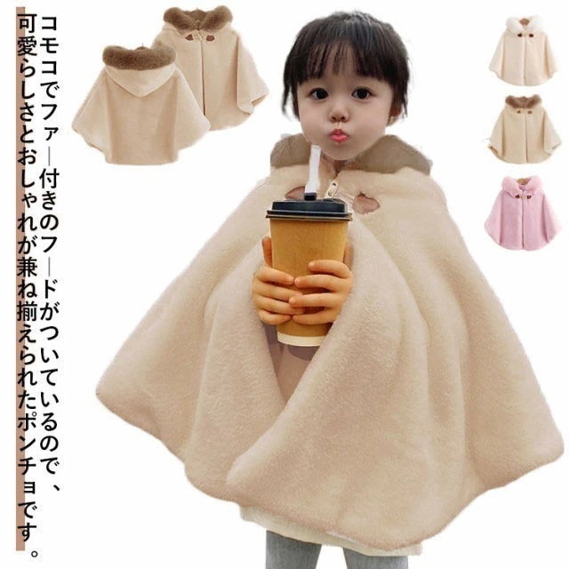 子供 ポンチョ フェイクファー 女の子 キッズ コート ふわふわ もこもこ あったか マント アウター 防寒 フード付き 子供ケープ ポンチョコート 羽織り ベビー服 幼児
