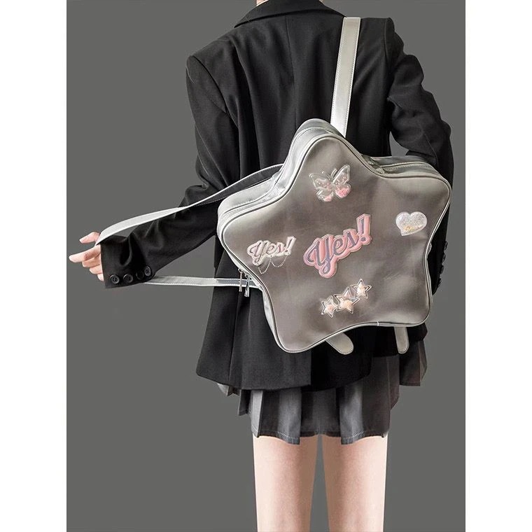 かわいいシルバー五芒星グリッターレーザーアルファベットショルダーバッグ通学バッグ小旅行バッグ