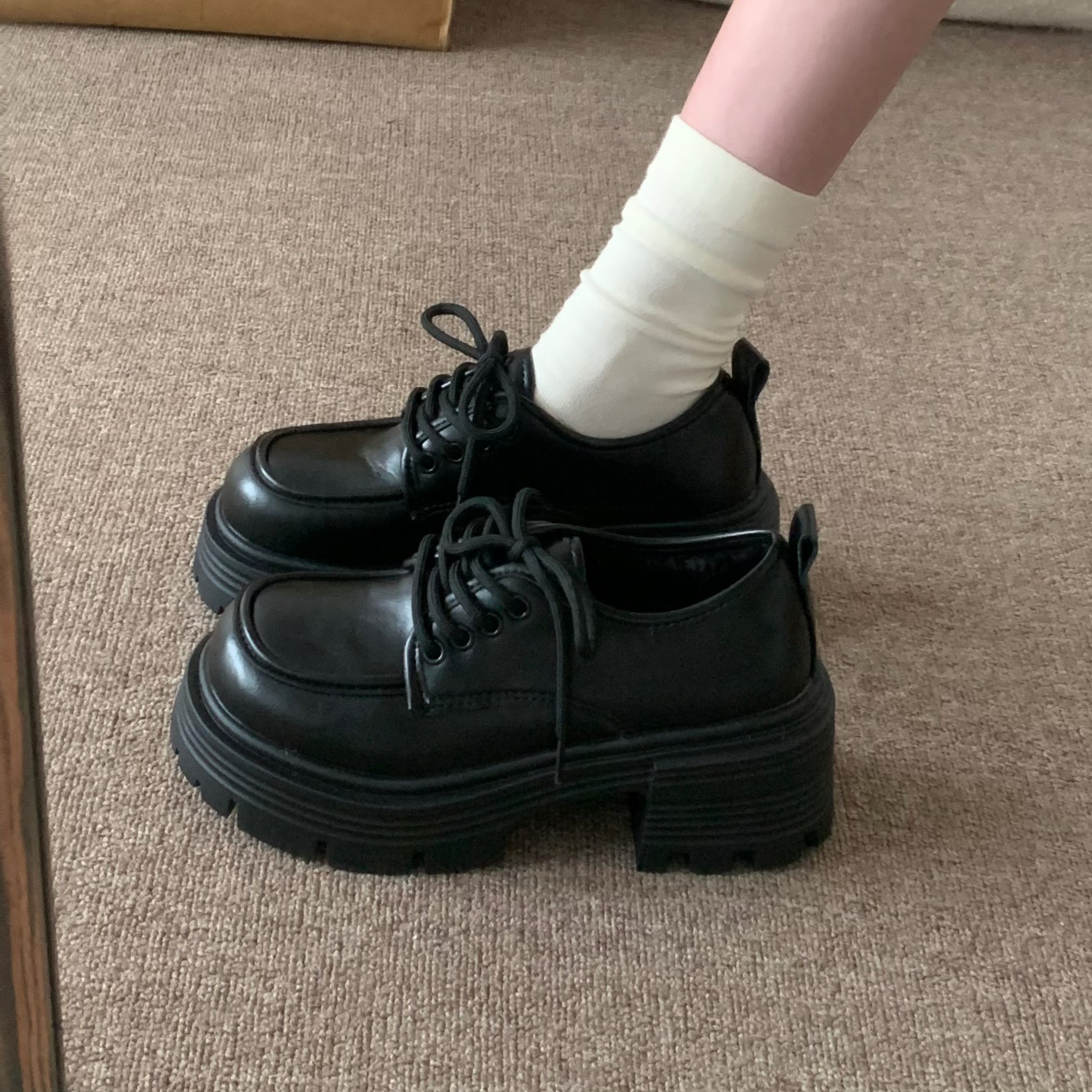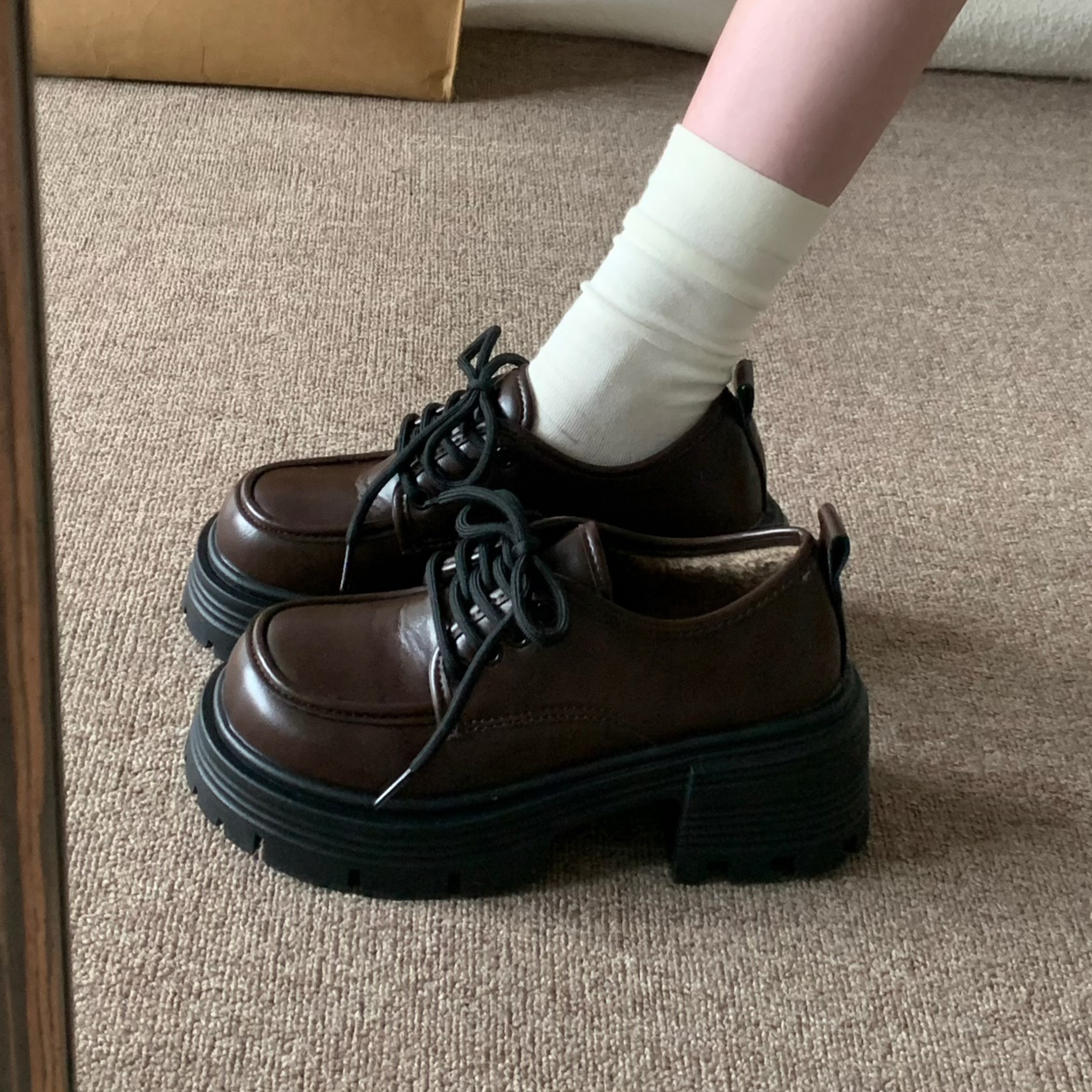 韓国ファッション 厚底サンダル 楽福靴女性秋冬2025新型英倫風加絨加厚保温小革靴厚底単靴
