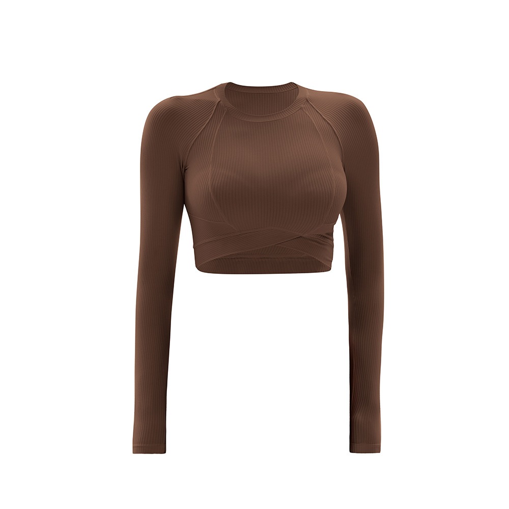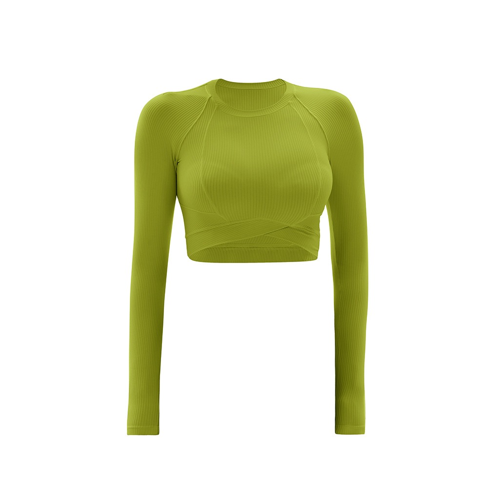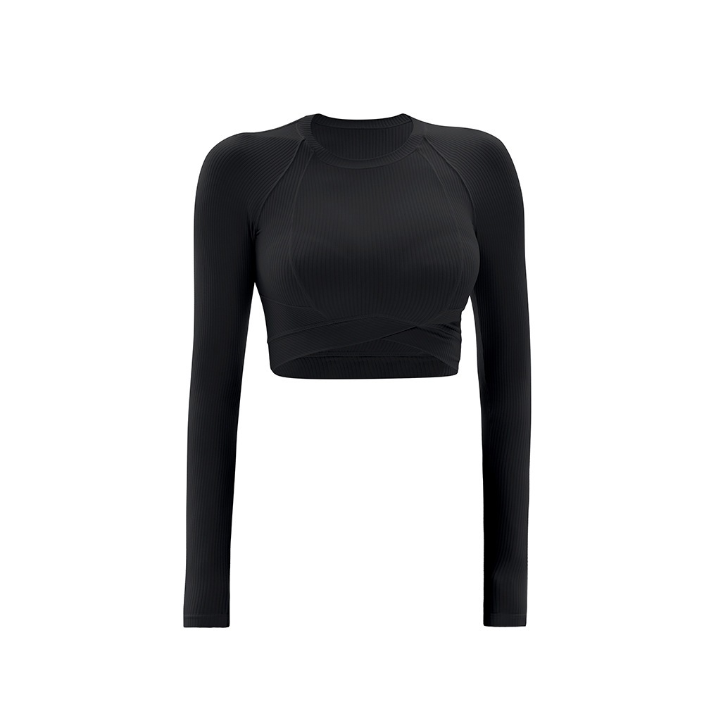 秋と冬のスポーツ ヨガ トップス女性速乾露出へそフィットネス服弾性痩身トレーニング服
