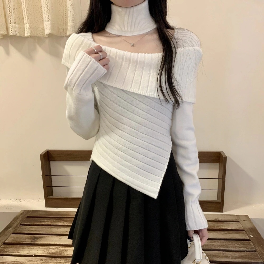 2025秋冬の新作 セーター 人気なリブニットレディース 首掛けのレッドのギャルニットトップス ニットカーディガンアウター 快適 通勤