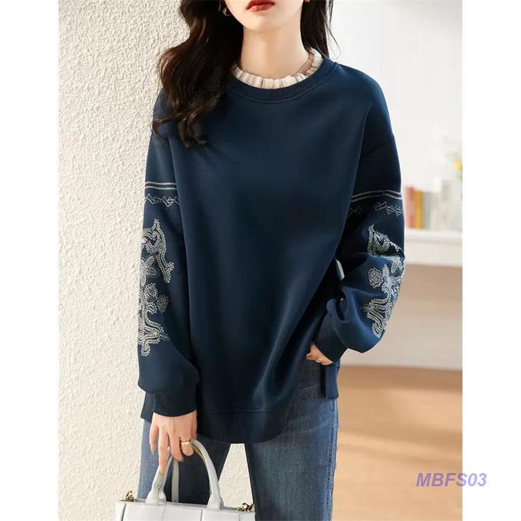 パーカー レディース プルオーバー フェイクレイヤード クルーネック 刺繍 レース 長袖 カジュアル ゆったり 着痩 春秋 おしゃれ 通勤 上品 新作