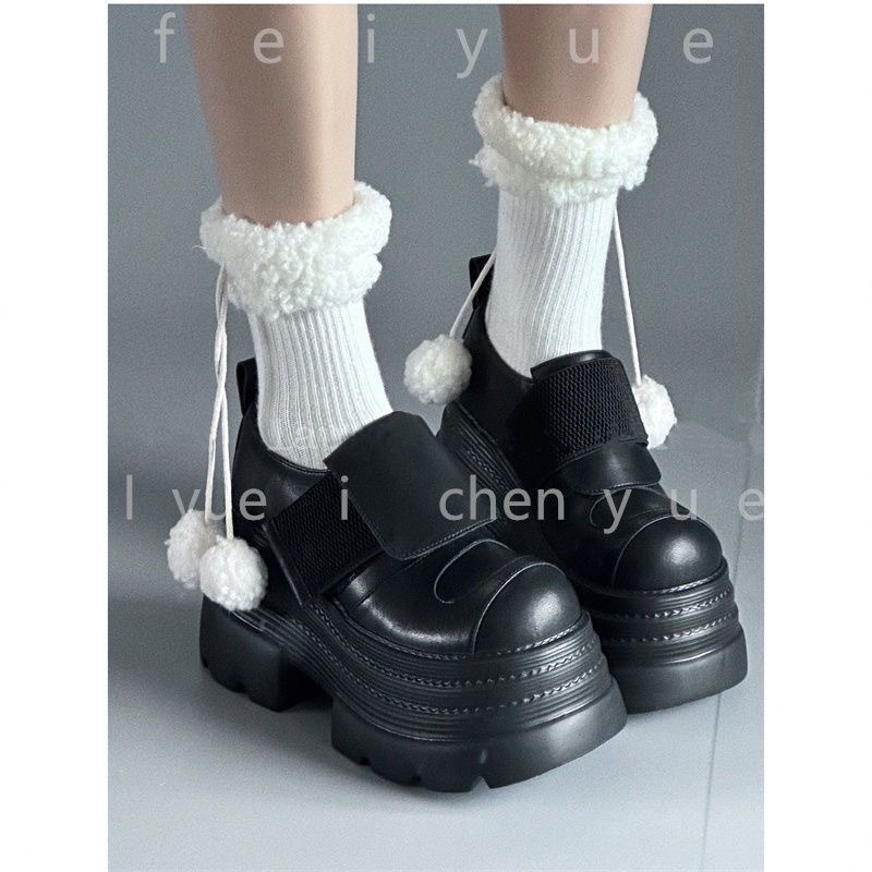 韓国ファッション 厚底サンダル 背の高い単靴10 CM超厚底靴女性本革楽福靴小柄マドレーヌ靴マジック貼り小革靴