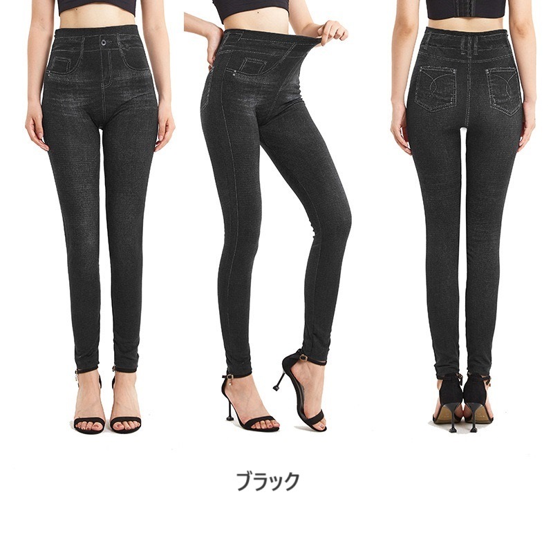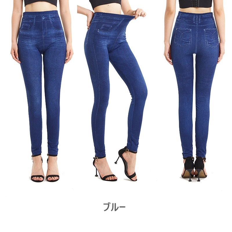 デニム風 レギンス パンツ ボトムス スキニー レギンスパンツ ハイウエスト ウエストゴム 伸縮性 ストレッチ デニムパンツ インディゴ 脚長 美脚 美脚効果 ジーンズ レギパン レディース 無地