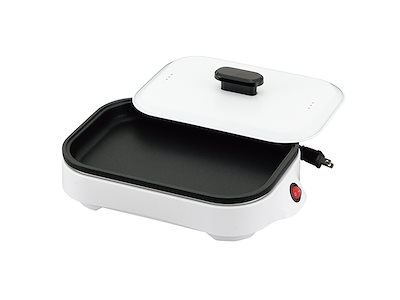 | 材料/素材 | 本体:ポリプロピレン、プレート:アルミニウム合金(フッ素樹脂塗膜加工)、ふた:スチール・フェノール樹脂、消費電力:AC100V-650W 50/60Hz、温度ヒューズ:240℃、コードの長さ:約1.4m | ||