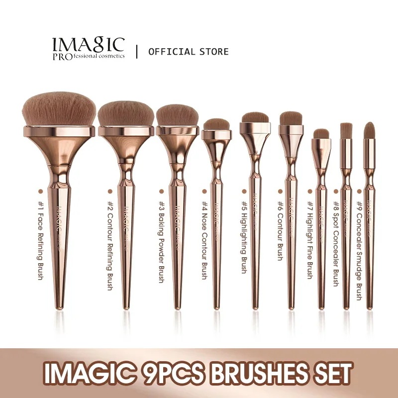 マジック-9本のメイクブラシのセット ハイライトライター アイシャドウ チークパウダー ソフトナイロンミックス アイコスメティックツール