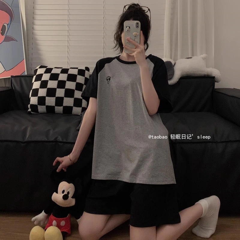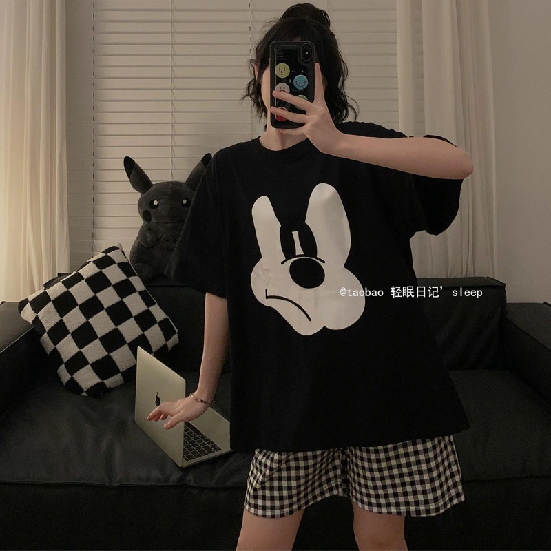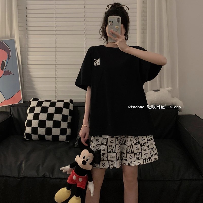 ディズニー新作入荷 バージョン ミッキー カップル パジャマ 夏 半袖ショートパンツ綿カジュアルラウンドネックレディースルームウェア2点セット