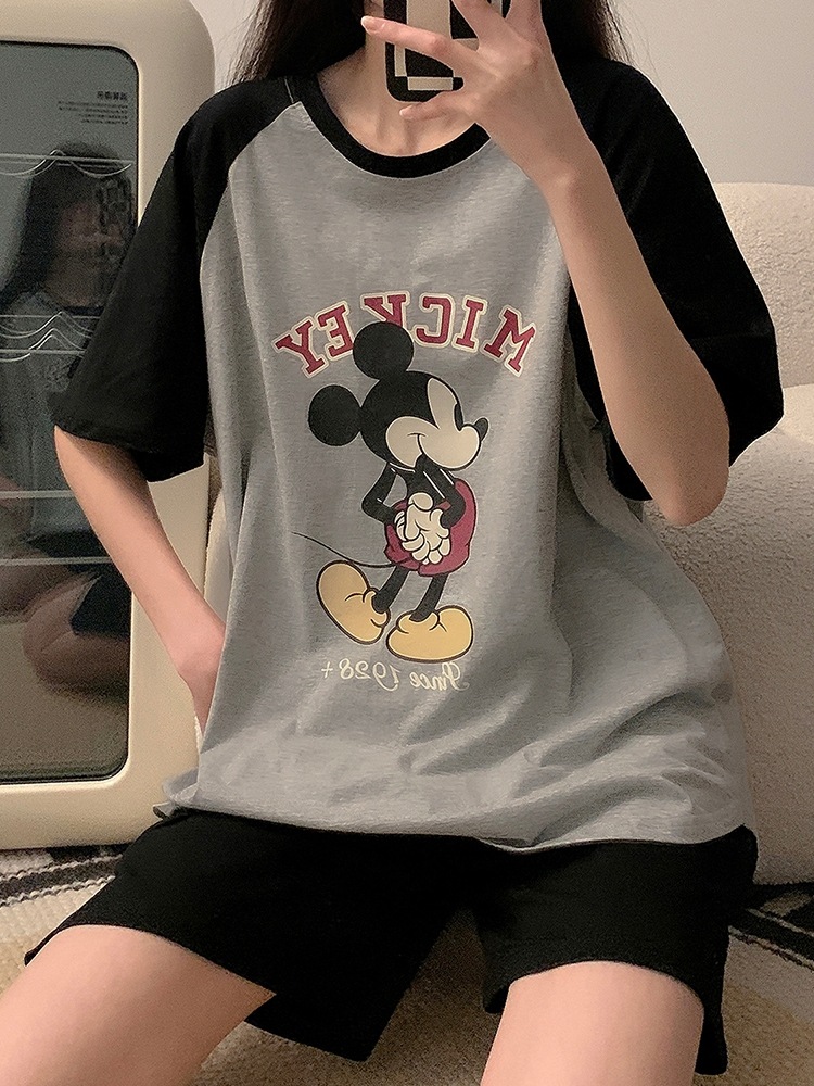 ディズニー大好き ミッキー 新作 可愛いパジャマ パジャマ ミッキー パジャマ カップル パジャマ レディース 夏綿半袖ショートパンツメンズルームウェアセット