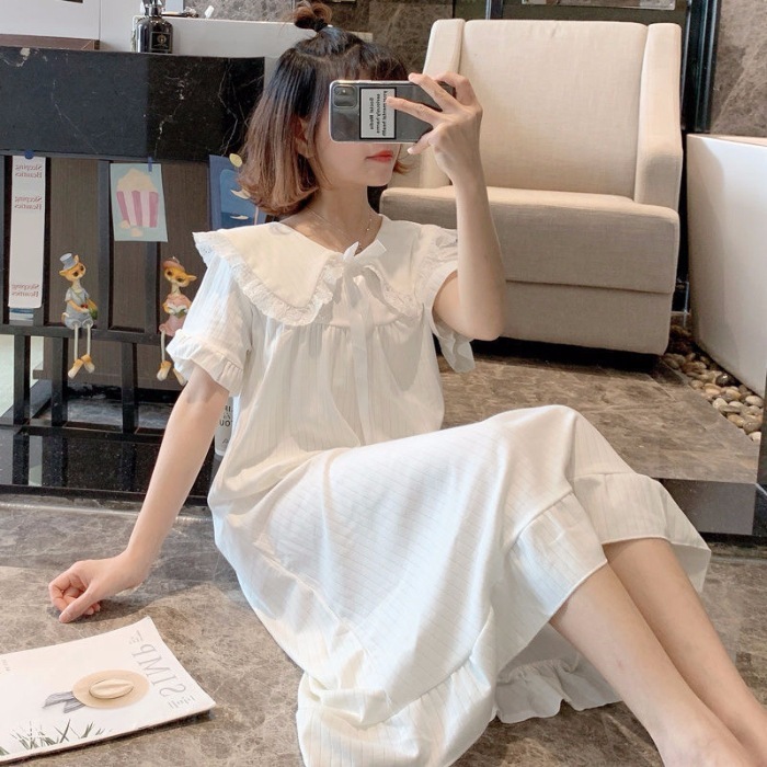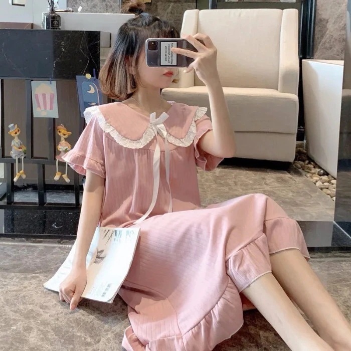 パジャマ ルームウェア レディース 夏 綿 半袖 花柄 リボン付き 大きいサイズ ワンピースパジャマ 女性 部屋着 寝間着 韓国風 ゆったり