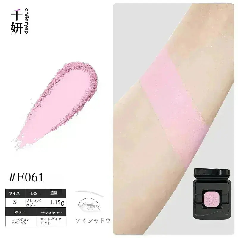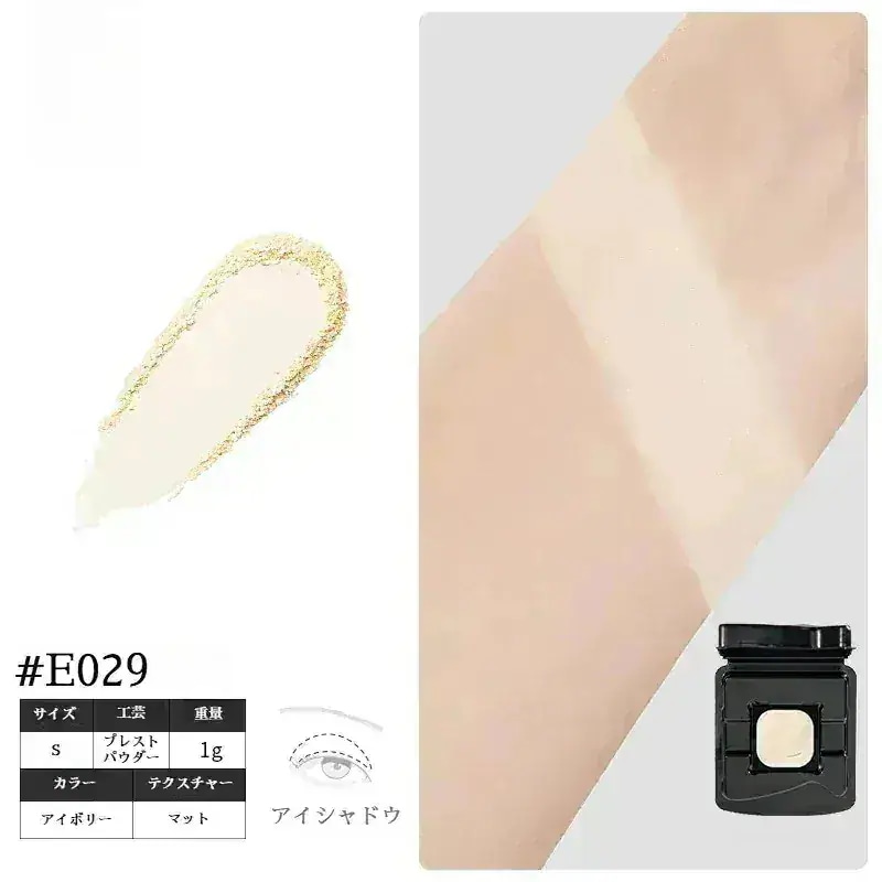 E035 E070 数回撫でるとパレット通りな感じの発色でかわいい。他のブランドでも同じ感じの色味はあると思いますが、時間がなく1パレットで済ませたい時や旅行用で買ったので問題なし。