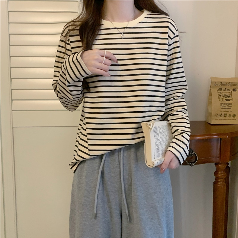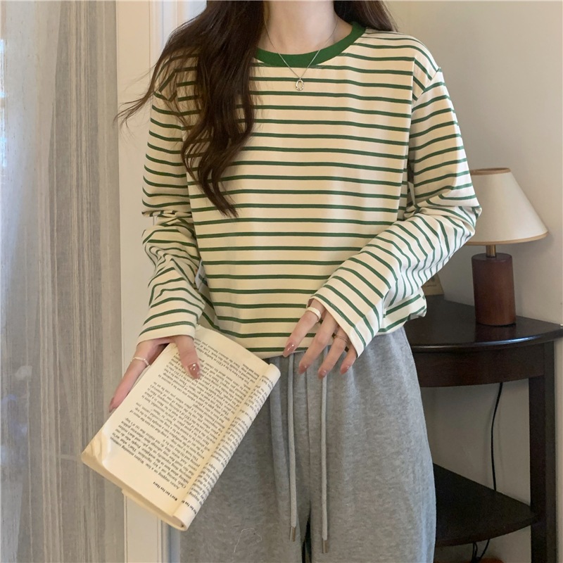 ボーダー ビッグロンT/長袖Tシャツ 万能ボーダーカットソー Tシャツ トレーナー スウェット トップス ストレッチ ドロップショルダー 韓国ファッション