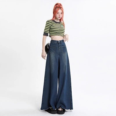 デニムパンツ【2枚購入で 2oo円OFF!】2024新作 おしゃれ 流行り ハイウエスト ワイドパンツ ジーンズ レディース レトロ ゆったり ズボン スラックスパンツ デニム スキニーパンツひんや
