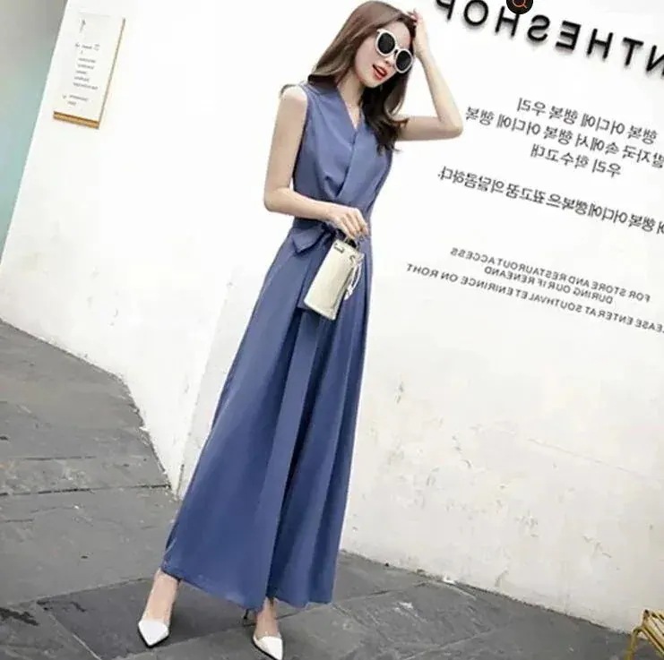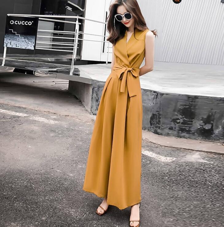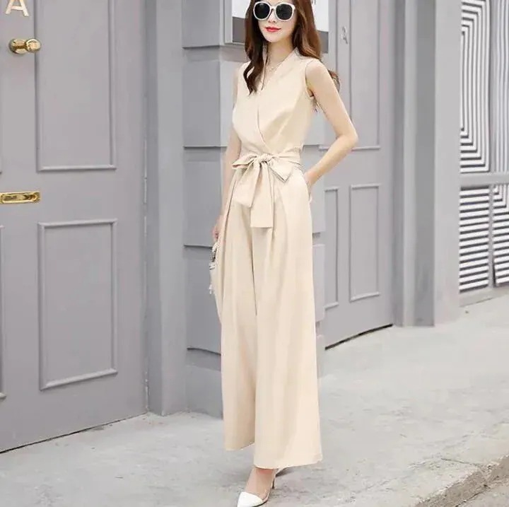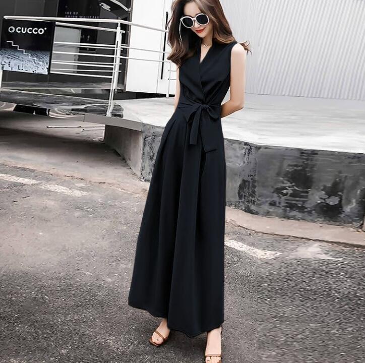 オールインワン ワイドパンツ レディース 夏 カジュアル ファッション Vネッ ク ノースリーブ インナー