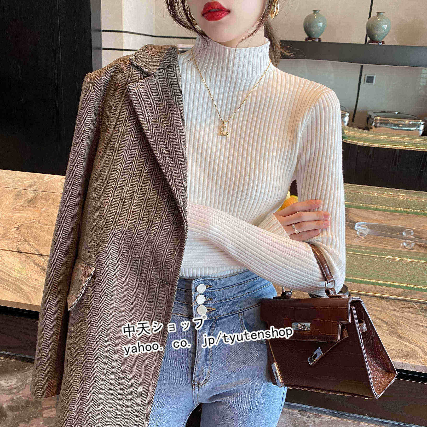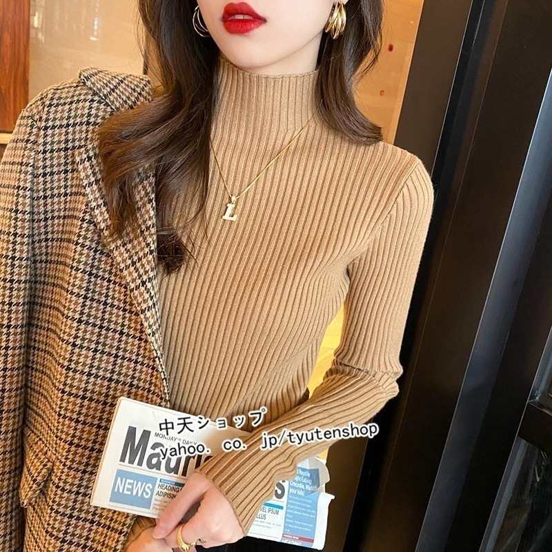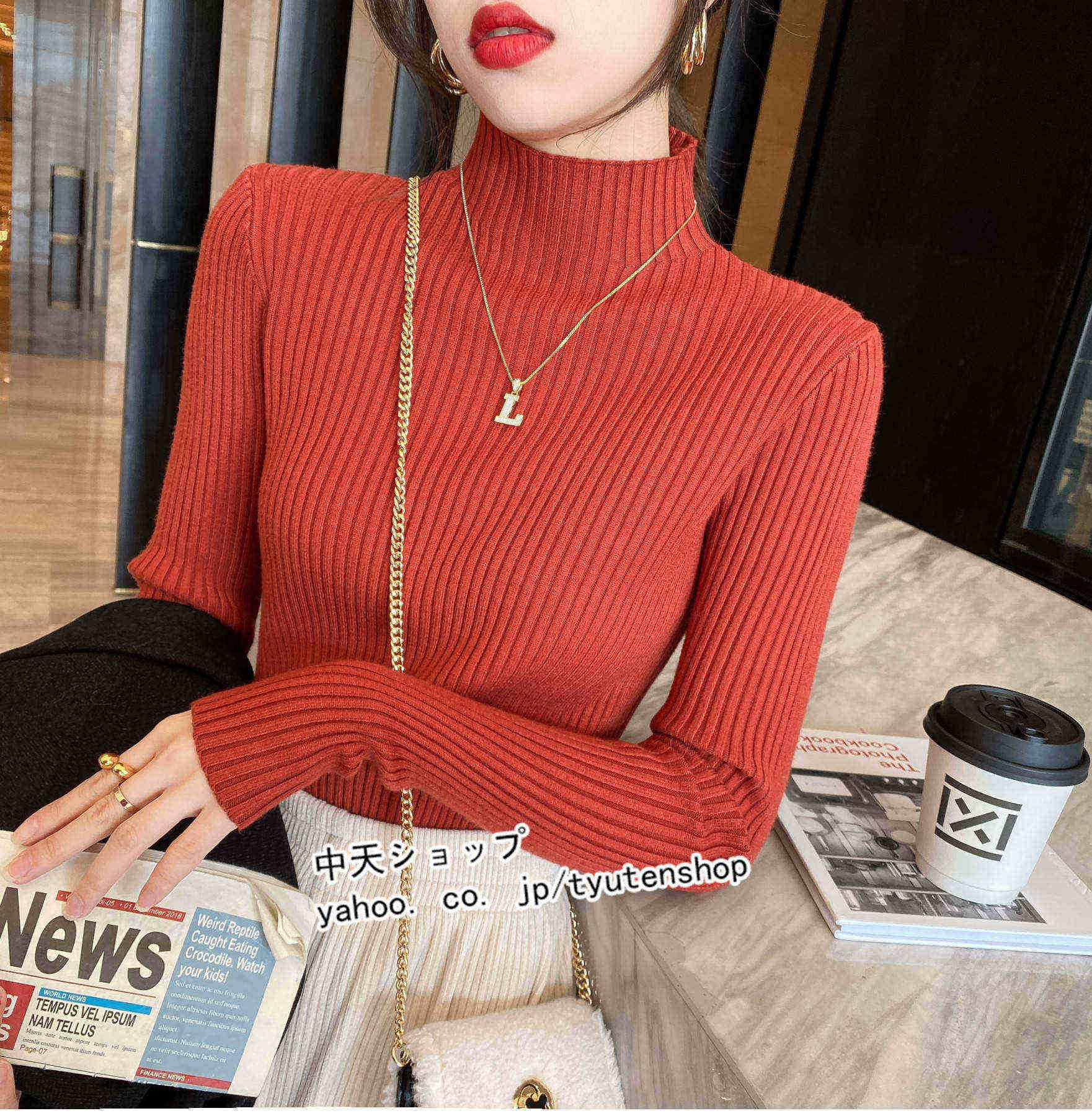 【即納】ニットセーター リブニット レディース ニットトップス インナーコーデ 秋冬 セーター 長袖 着痩せ 春トップス 韓国風 ハーフネック おしゃれ 大人 ファッション