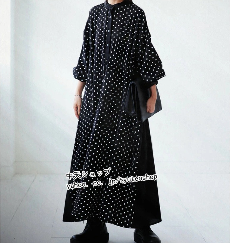 【即納】秋ロングワンピース ドッキングワンピース レディース夏 40代50代 マキシ丈 薄手ワンピース春物 長袖 ドット柄 カジュアルワンピース 大人 お洒落 シンプル
