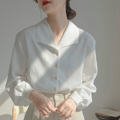 シャツ ブラウス レディース 長袖 折り襟 トップス 柔らかい 着痩せ 無地 シンプル きれいめ エレガント ワイシャツ 日常 オフィス カジュアル 通勤 春秋冬
