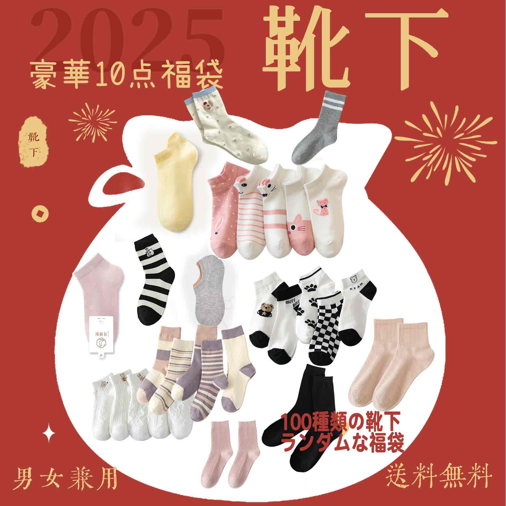 5 5fuc*** 2025.02.20 Type:10枚福袋【ショートソックス多めにして欲しいです】 カラースタイルの説明:100多款随机配送10款袜子オプション : Type:10枚福袋【ショートソックス多めにして欲しいです】 / カラースタイルの説明:100多款随机配送10款袜子