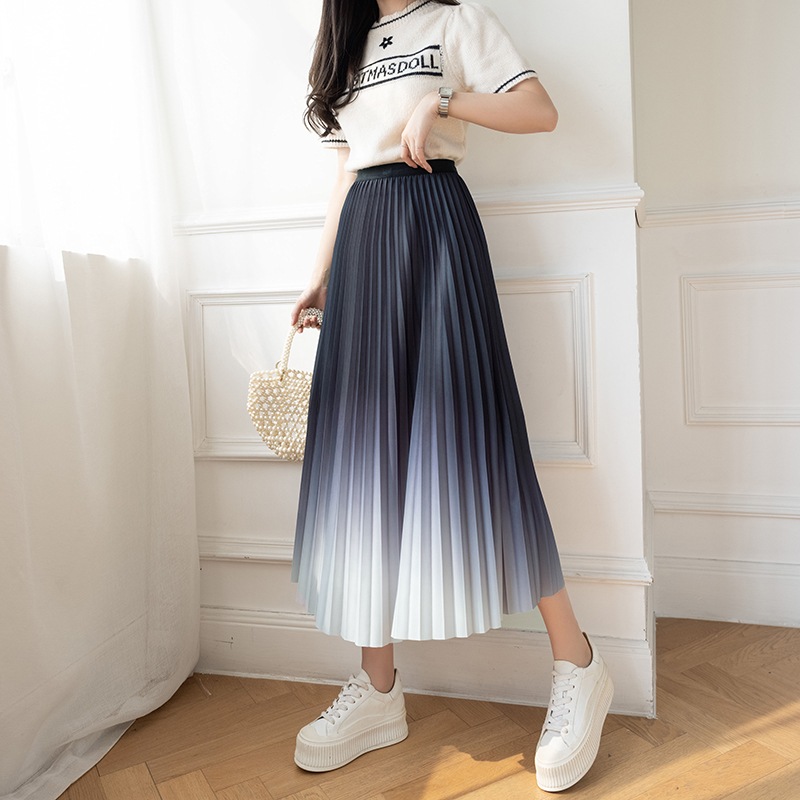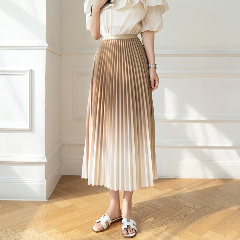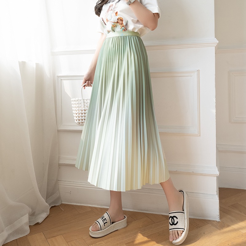 グラデーション スカート レディース ロングスカート プリーツスカートウエストゴム フリル Aライン 着痩せ 体型カバー 無地 エレガント おしゃれ カジュアル 可愛い デート 通勤 春 夏 秋
