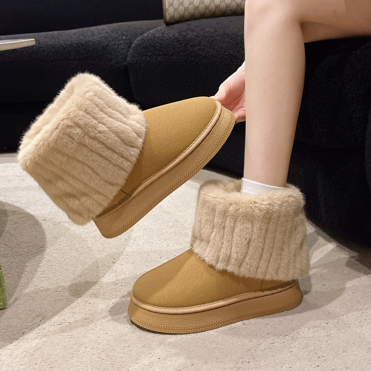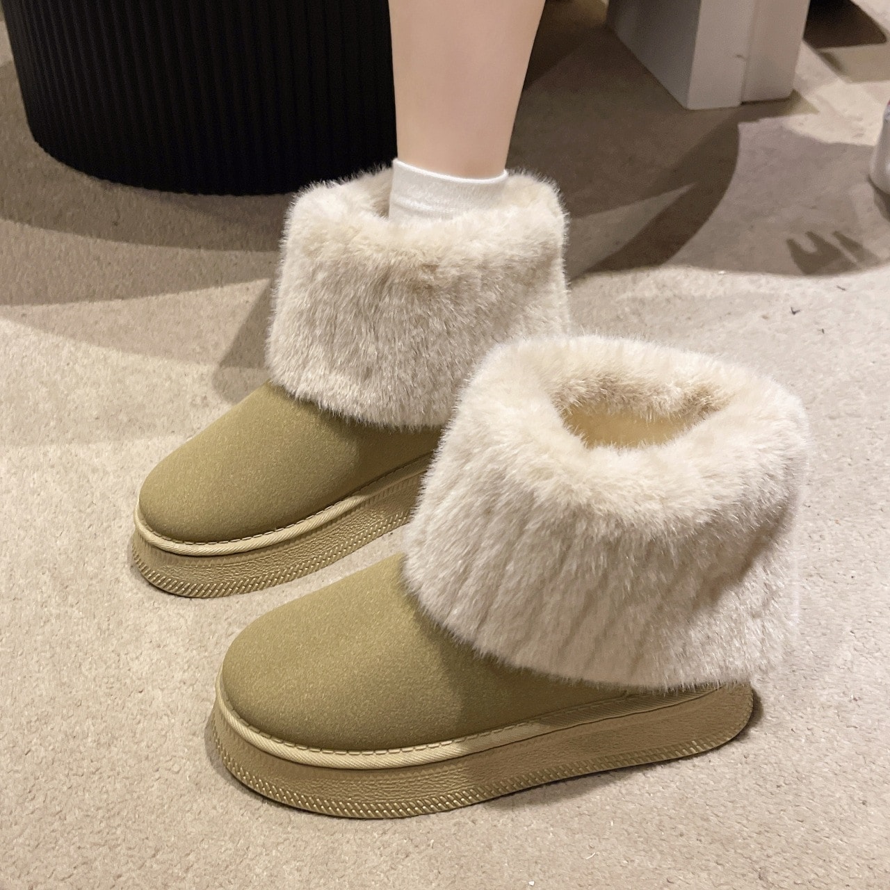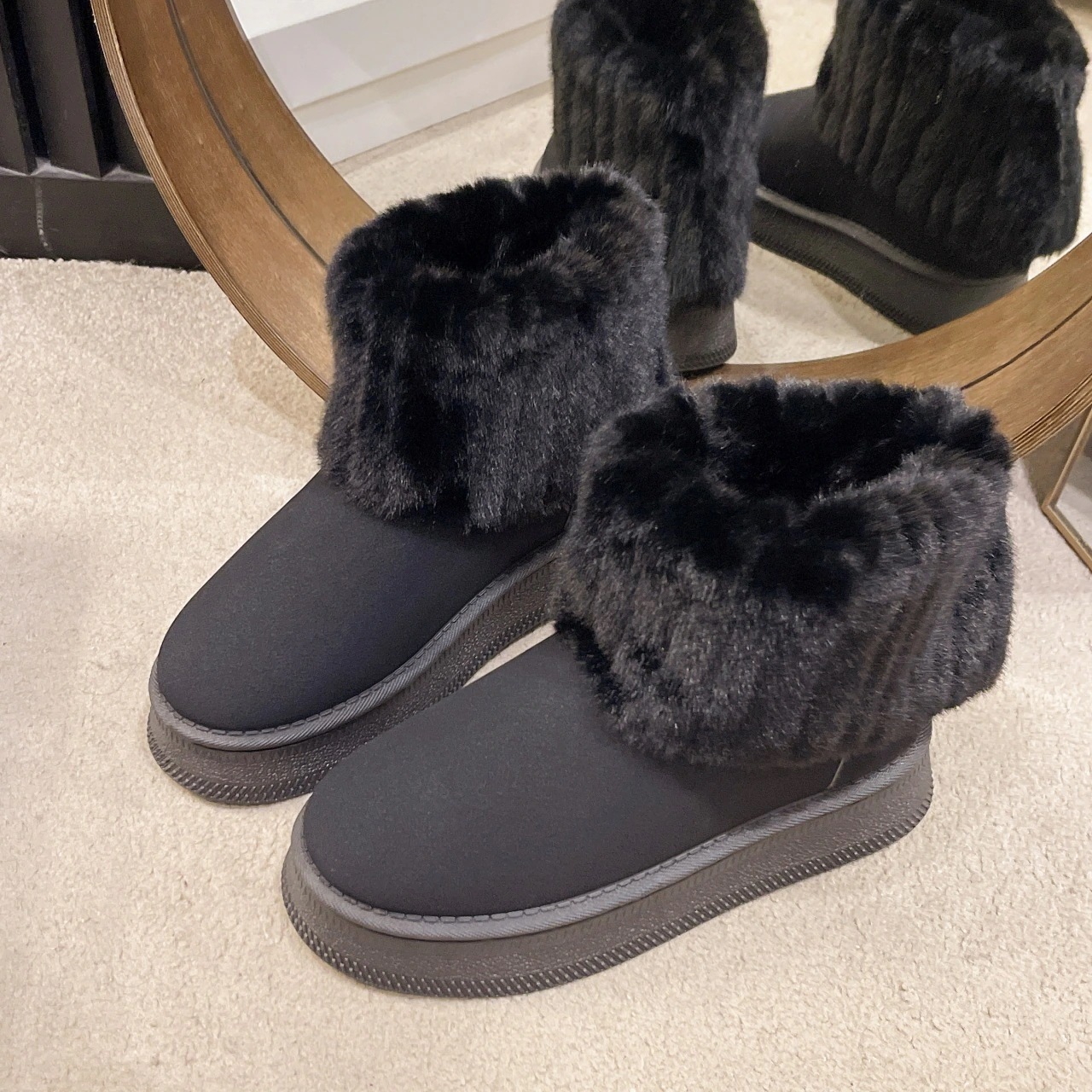 【新品】ムートンブーツ 婦人用 防寒 極暖 冬靴 大きいサイズ スエード調 22.5-26cm レディース 無地 ショートブーツ 暖かい 防寒 外出 厚底 スノーブーズ 裏起毛 シューズ