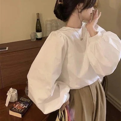 服 女っぽ 韓国っぽ フェミニン 通勤 OL パフスリーブ オーバーサイズ 長袖 ゆったり きれいめ カジュアル ボリュームスリーブ トップス ブラウス バルーンスリーブ ぽわん袖が可愛いブラウス