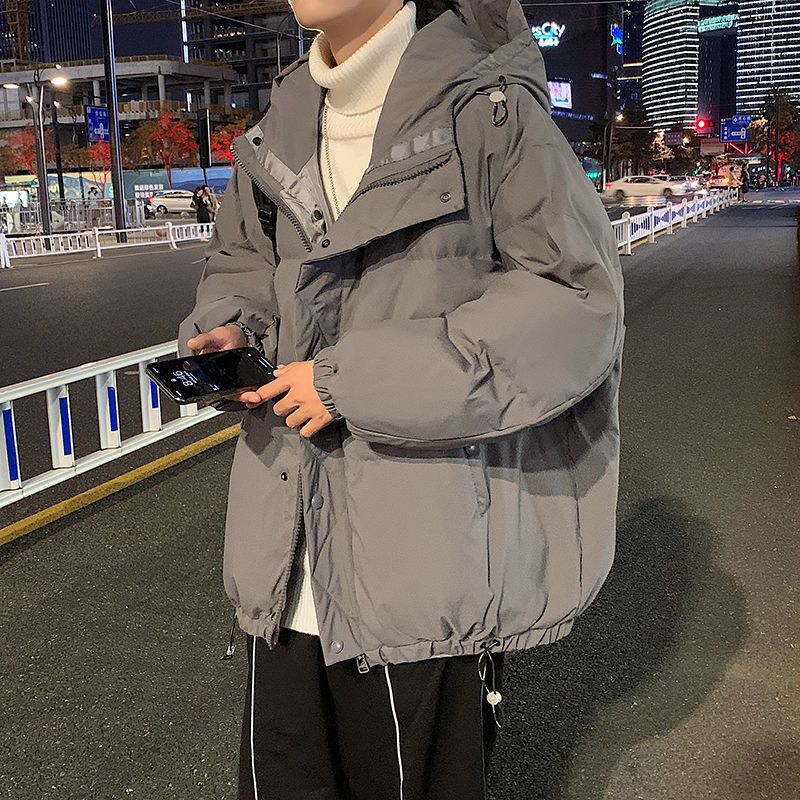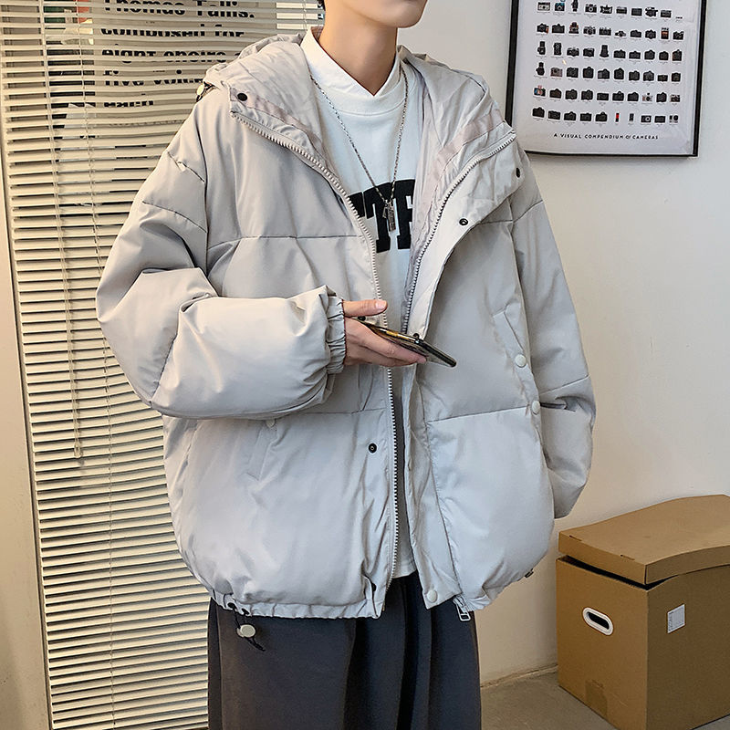 2025INS大人気 新作 ファッション 純色 ゆったり カジュアル メンズ フード付き ダウンジャケット 防寒 シンプル 中綿コート