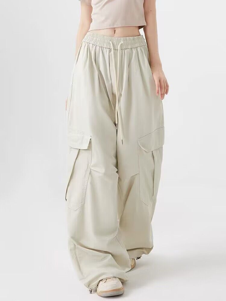 【新春初売】レディース カーゴパンツ パンツ 韓国ファッション 無地 ズボン ゆったりフィット 高級感 ワイドパンツ スウェット百掛け ウエストゴム ジャージ 運動 体型カバー 着痩せ 脚長効果 春服