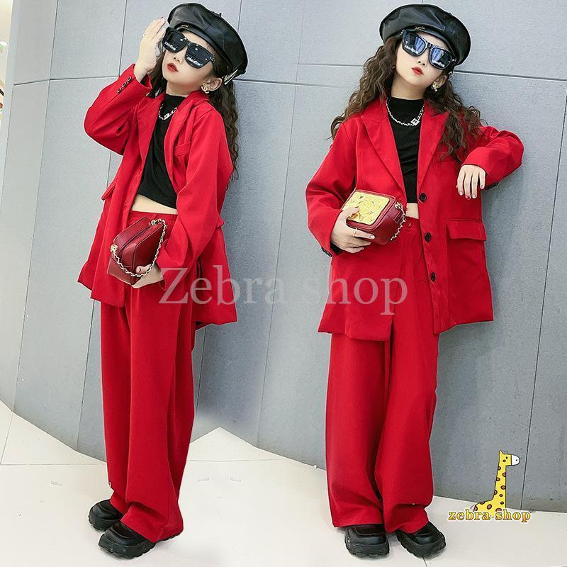 ホップ 衣装 ガールズ ジャズ キッズ ダンス アップ キッズダンス衣装 ファッション スーツ ジャケット ロングパンツ 韓国 赤