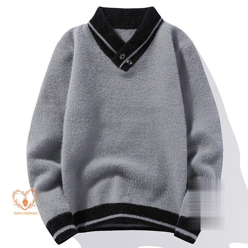 セーター メンズ シャギーニット ふわふわ 長袖 Vネック 切り替え 防寒着 冬 ド 暖かい ス ス 秋 冬 冬服