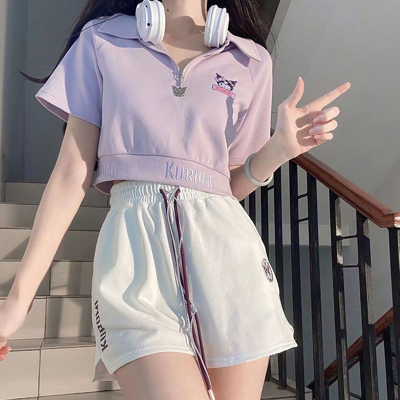 サンリオサンリオクロミTシャツギャル臍出しショートポロシャツジャージ旅のお出かけセット女Tシャツ ティ-シャツ