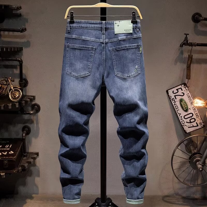 メンズパンツ2025新しいストレッチプレミアムフィールテーパード潮レジャージーンズ夏スリム小足
