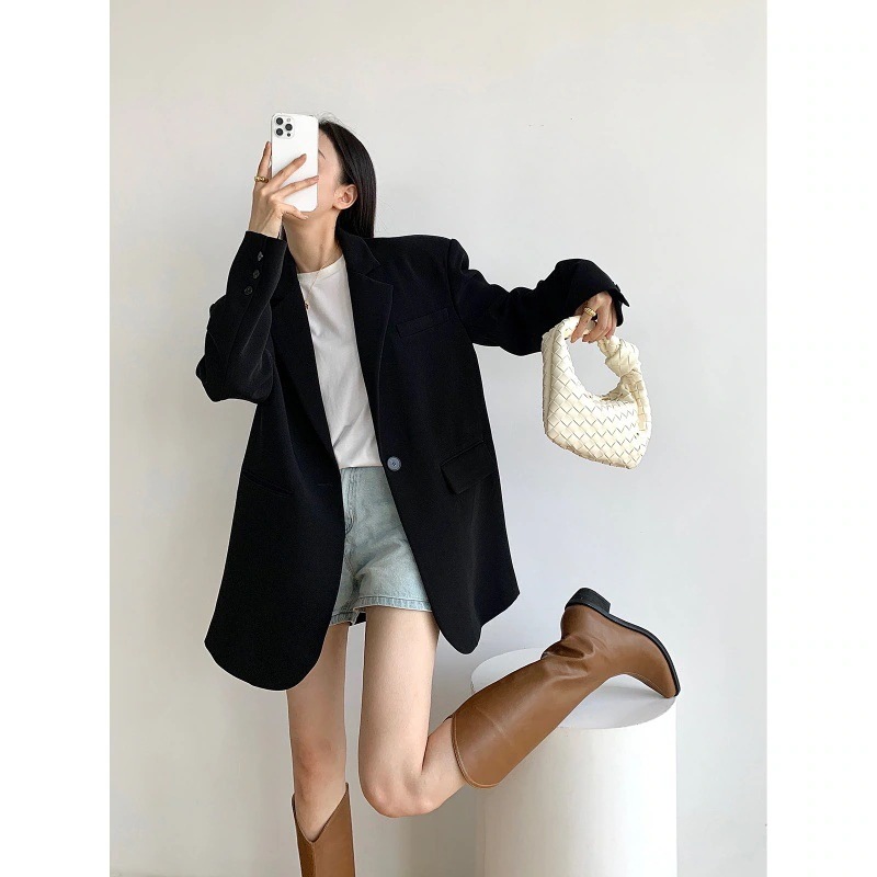 2025韓国 春服 アウターファッション ゆったり スーツジャケット トップス通勤 快適 ブラックカジュアル フォーマル レディースブレザー