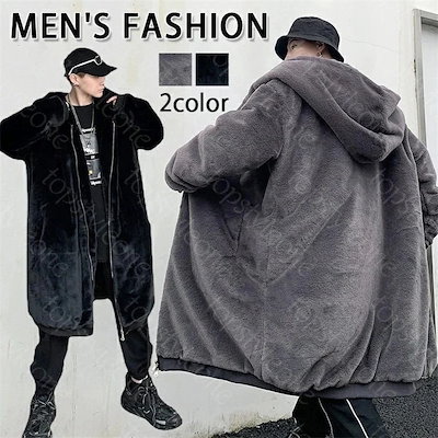 ボアコート 厚手 メンズ ファー ロングコート フェイクファー コート フード付き 毛皮コート ファーコート フリースコート オーバーサイズ ゆったり 防寒 あったか 冬物 秋冬 ボアパーカー ボアジ