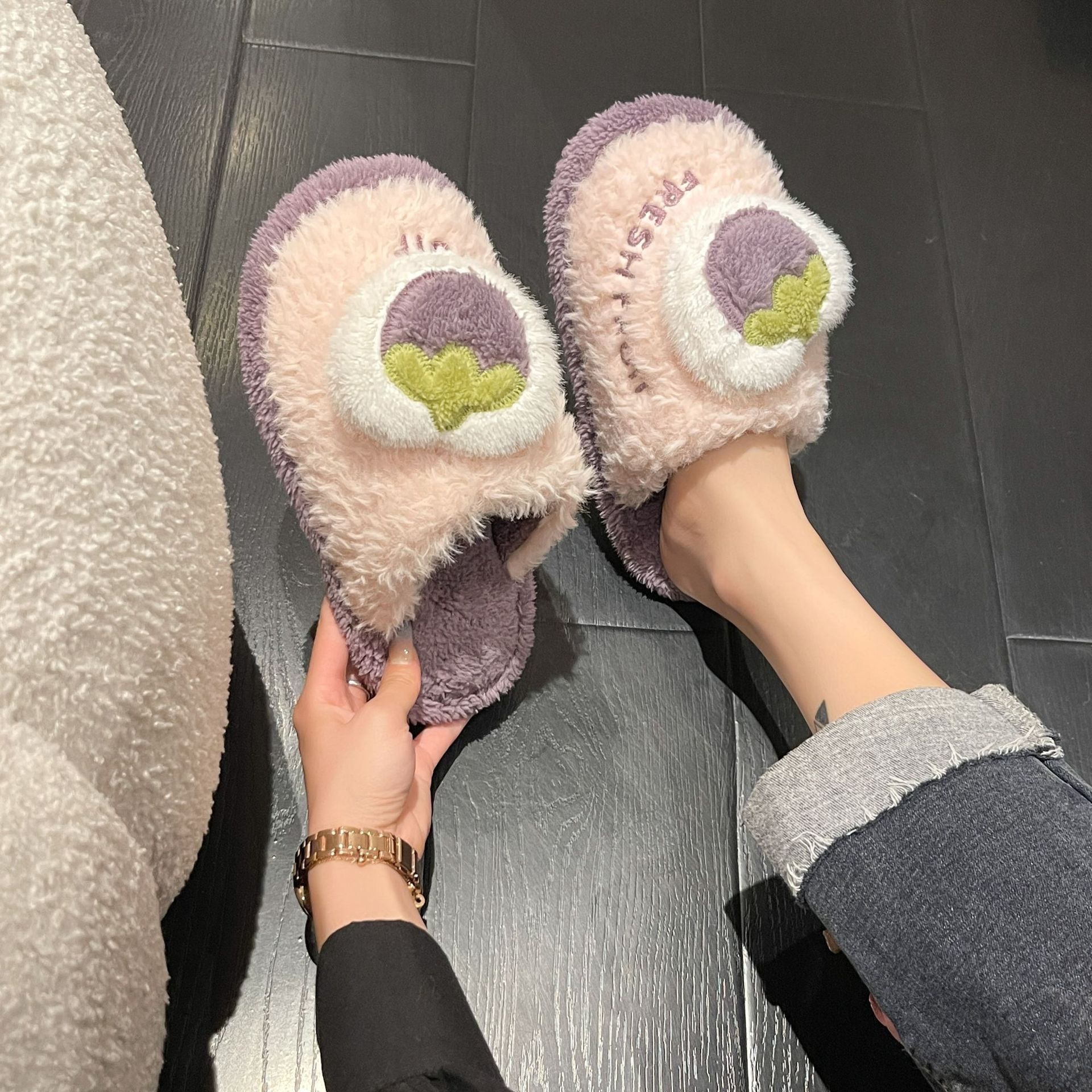 冬の暖かい室内用ウールスリッパの外に可愛いフルーツの装飾を施した厚手のスリッパのモコモコ