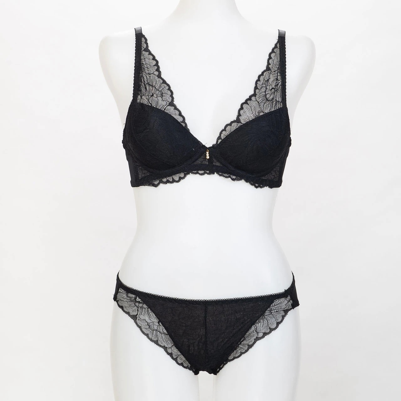 ELENEファシネイト(S・M・L・LL) ノンワイヤーブラジャー&ショーツセット ソニアブラック ノンワイヤーブラ ブラ ブラジャー ブラ上下セット aカップ bカップ cカップ dカップ eカップ