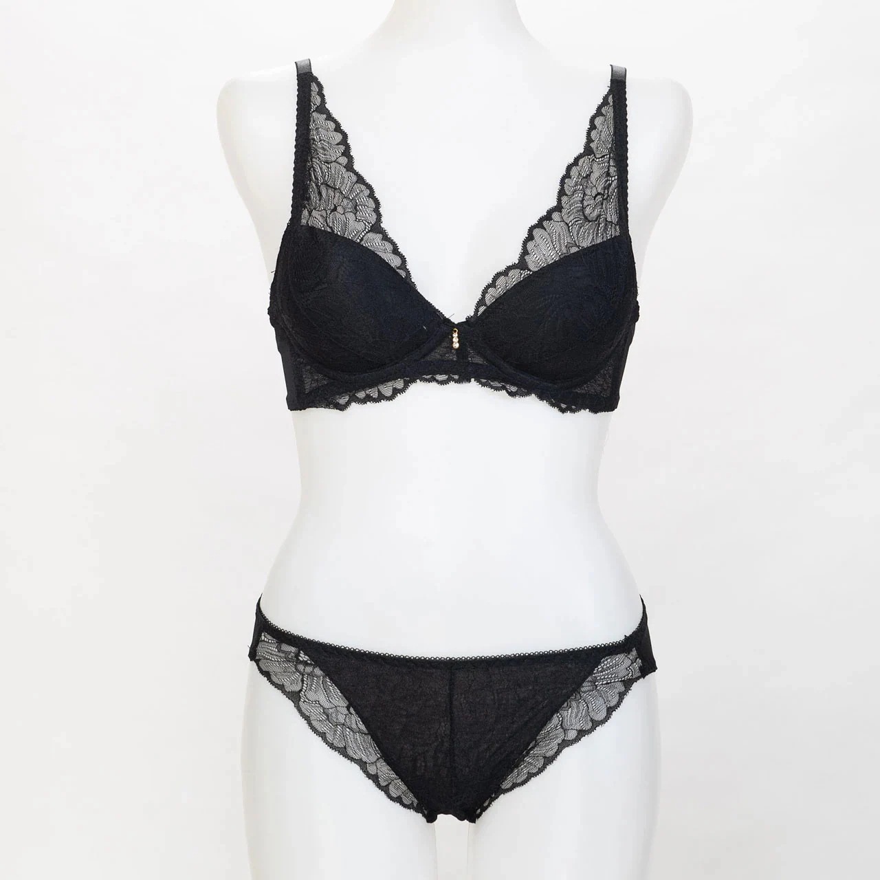 ELENEファシネイト(3L・4L・5L) ノンワイヤーブラジャー&ショーツセット ソニアブラック ノンワイヤーブラ グラマー ブラ 大きいサイズ aカップ bカップ cカップ dカップ eカップ fカップ