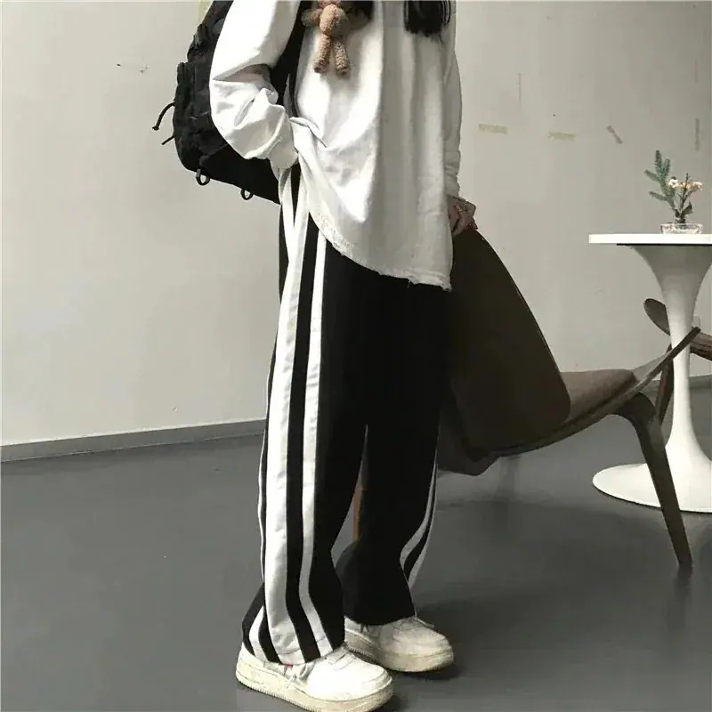 2色 パンツ レディース ラインパンツ スウェット ジャージ 白 黒 部屋着 ワイド ラフ