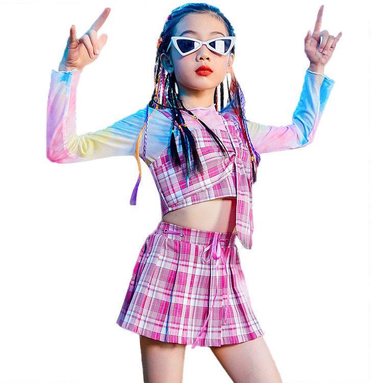 風格が独特チアガール 体操服 女の子 キッズダンス衣装 セットアップ チア チェック柄 スカート 学生 運動会 ダンス 衣装 ヒップホップ キッズ ダンス衣装 韓国 子供服 ガ