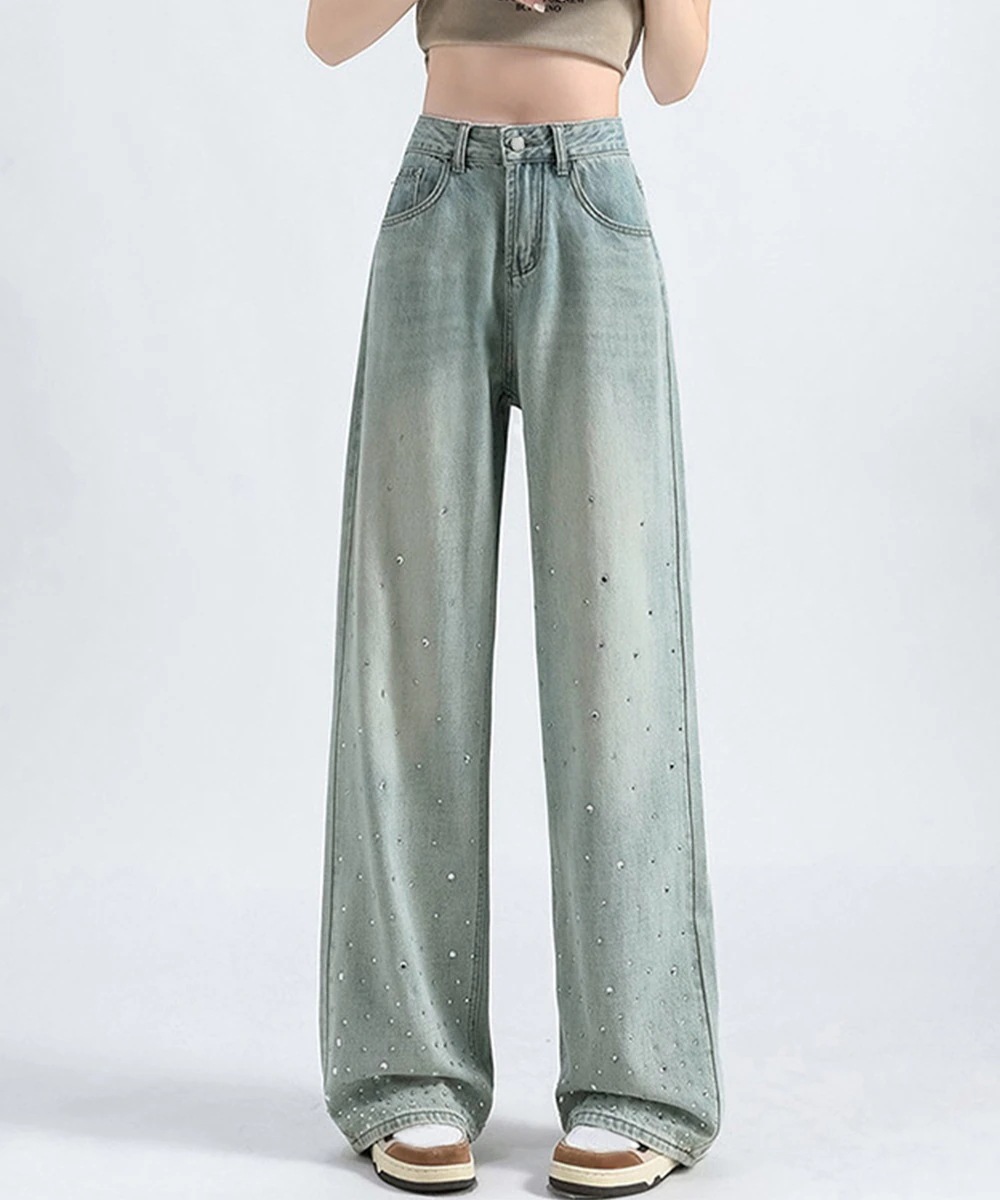ジーンズ ラインストーン デニムパンツ レディース ワイドパンツ