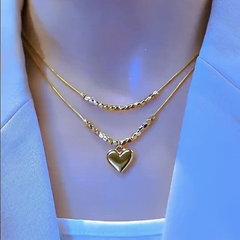 ハートペンダント気質 ヒップホップ 鎖骨チェーン 高級デザイン レディー チタン鋼二重ハートネックレス 新作 ネックレス