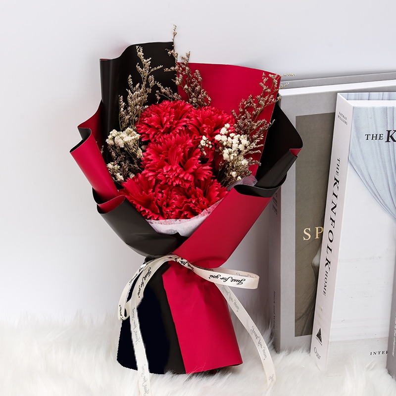卒業式 バレンタインデー女性の日母の乾燥ブーケカーネーション星で満たされた永遠の花ローズソープフラワーギフト