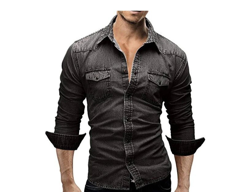 ブラウス メンズ 新しいヨーロッパと米国の風カジュアルなソリッドカラーのスプライシングメンズデニムシャツ男性 長袖 韓国 メンズファッション アウター オフィス シャツ