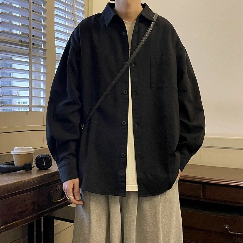 トレンディハンドレッドギャングスタージャケット アメリカンタイドゆったり大きいサイズカジュアル長袖シャツ メンズ黒シャツ
