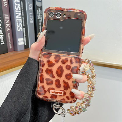 Galaxygalaxy z flip6 ケース ヒョウ柄 galaxy z flip5 ケース ビーズ ストラップ付き galaxy z flip4 ケース 韓国 おしゃれ ギャラクシー Z フリップ3 ケース
