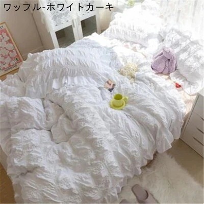 素敵な商品 早い者勝ち おしゃれ シンプル 4点セット 防ダニ 布団カバー フリル シングル