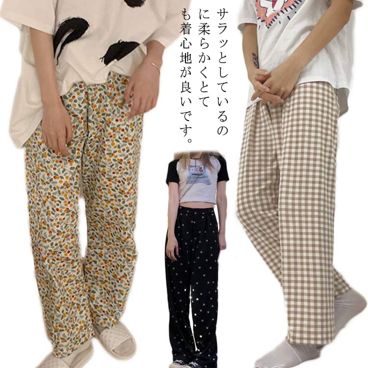 パンツ ルームウェア かわいい 総柄 チェック柄 長ズボン パジャマ下 レディース 春 夏 秋 薄手 ゆったり カジュアル ボトムス ウエストゴム 大きいサイズ 可愛い 部屋着 寝間着 寝巻き 無