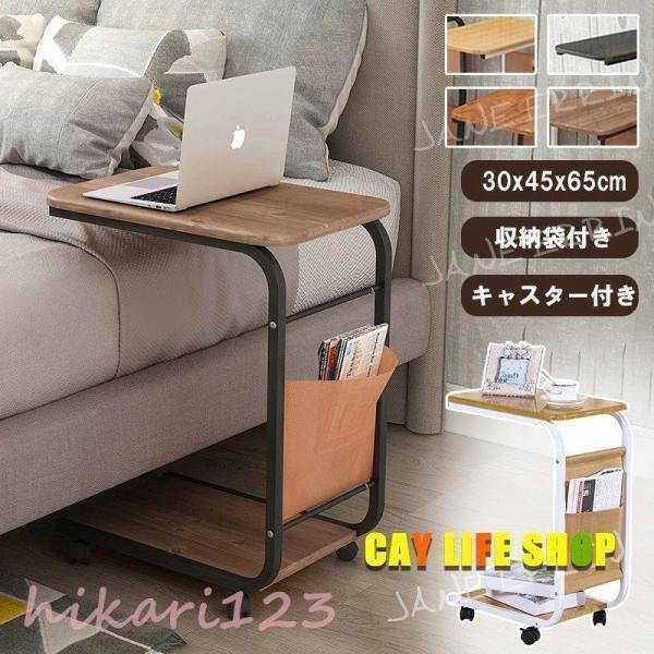 サイドテーブル ナイトテーブル ソファテーブル おしゃれ コ字型 北欧 キャスター付き 収納袋付き 小型 ベッドサイド 簡易デスク スリム おしゃれ