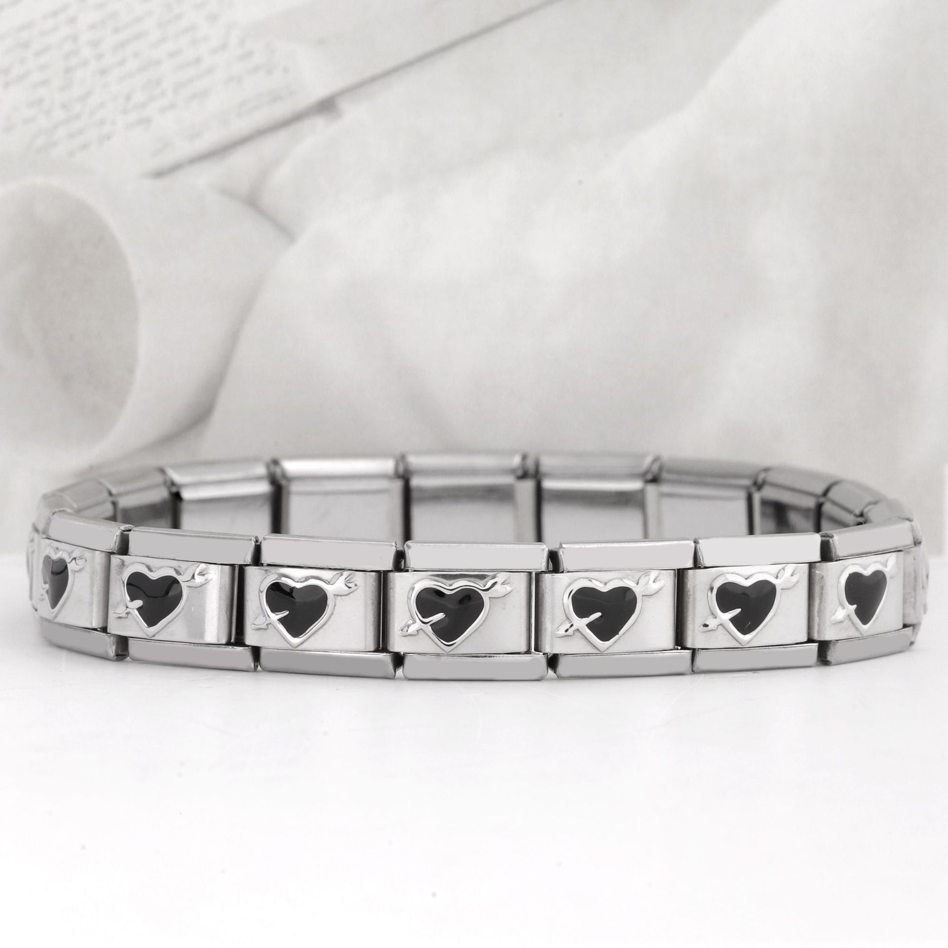 9 mmモジュールブレスレットハート型ダブルハート宝石シリーズ刺繍なし鋼継手飾りシングル